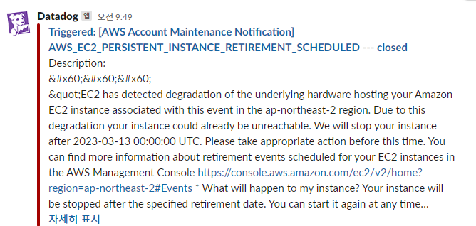 현 시스템은 이벤트 발생 후 즉시 알림을 보내는 구조이지만, AWS Health의 예정된 이벤트(예: ‘7일 이내 예정된 점검’)를 미리 DynamoDB에 저장하고, 하루에 한 번 정기적으로 필터링하여 Slack으로 전달하는 기능도 개발 진행중입니다. 이 기능이 완성되면 선제 대응이 가능해지고, 서비스 유지보수 시나리오를 미리 준비할 수 있어 고객 경험이 크게 개선될 것입니다.